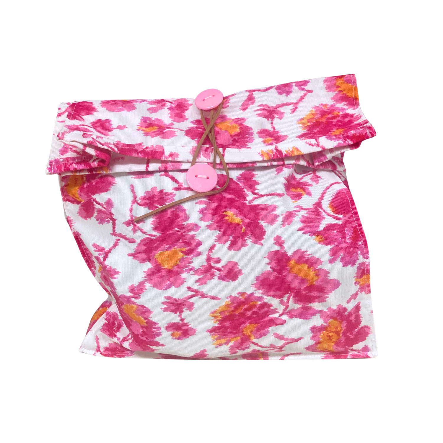 This meticulously handcrafted and eco friendly reusable lunch bag is great for school and work lunches. These bags are stitched from high quality, cotton fabric with an easy button and string tie to keep your food closed and safe inside. The lunch sack measures at 4 inches in length, 10 inches in width, and  13 inches in height.