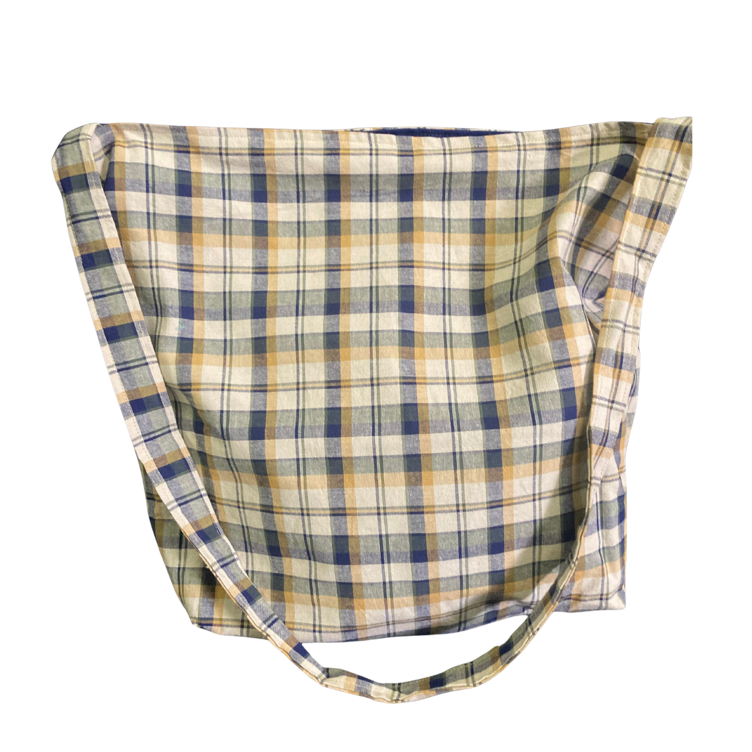 This lovely tote is perfect for carrying books or an afternoon at the pool. The bag's simple and functional design is great for work, school, and everyday use. The bottom boxed corners give support for heavier objects and the long, sturdy strap can be worn crossbody or casually on one shoulder. The bag measures approximately 18 inches by 18 inches and has a two pockets on the inside. The strap is 40 inches in length.