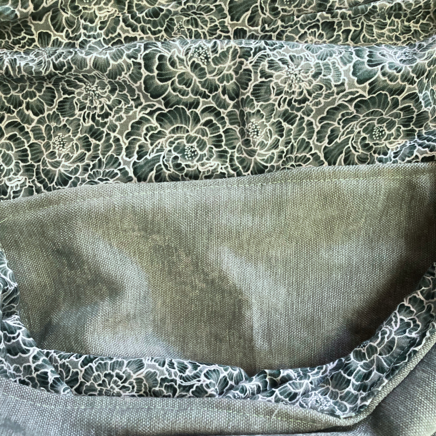 This lovely tote is perfect for carrying books or an afternoon at the pool. The bag's simple and functional design is great for work, school, and everyday use. The bottom boxed corners give support for heavier objects and the long, sturdy strap can be worn crossbody or casually on one shoulder. This bag is also reversible, giving you the option between two different patterns. The bag measures approximately 15 inches by 15 inches and has a large pocket on the inside. The strap is 40 inches in length.