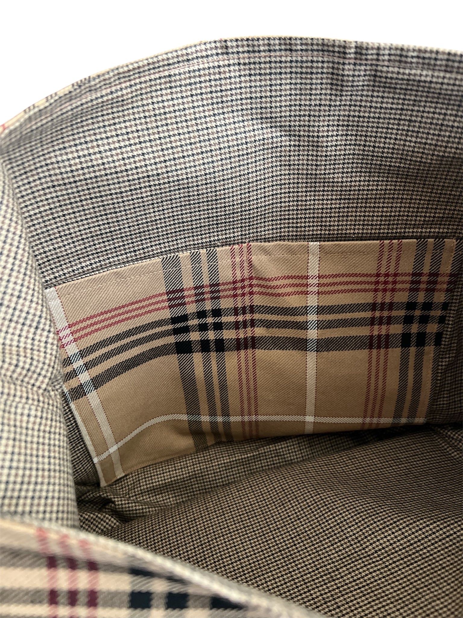 This lovely tote is perfect for carrying books or an afternoon at the pool. The bag's simple and functional design is great for work, school, and everyday use. The bottom boxed corners give support for heavier objects and the long, sturdy strap can be worn crossbody or casually on one shoulder. This bag is also reversible, giving you the option between two different patterns. The bag measures approximately 15 inches by 15 inches and has a large pocket on the inside. The strap is 40 inches in length.