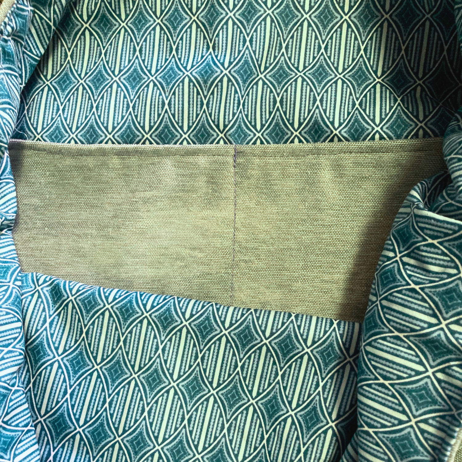 This lovely tote is perfect for carrying books or an afternoon at the pool. The bag's simple and functional design is great for work, school, and everyday use. The bottom boxed corners give support for heavier objects and the long, sturdy strap can be worn crossbody or casually on one shoulder. This bag is also reversible, giving you the option between two different patterns. The bag measures approximately 15 inches by 15 inches and has a large pocket on the inside. The strap is 40 inches in length.